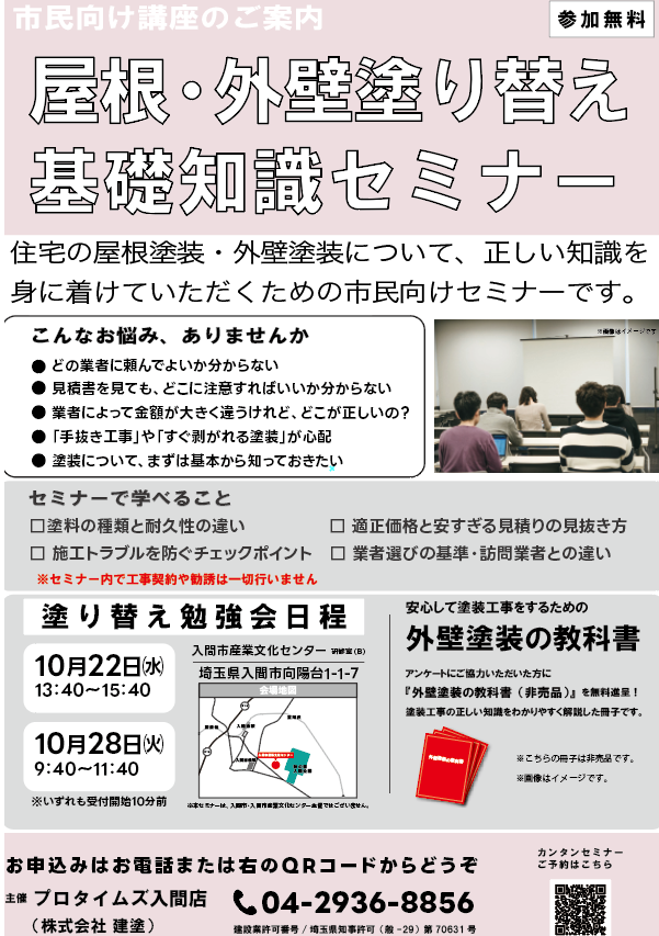 屋根塗装&外壁塗装 塗り替え勉強会のお知らせ 10月開催