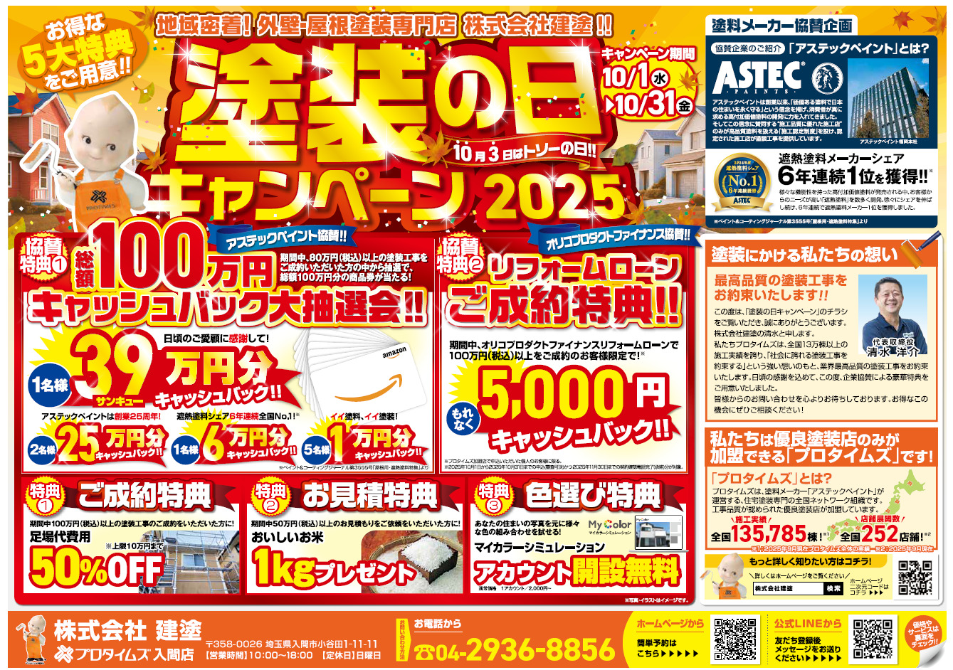 埼玉県の数ある外壁塗装屋の中から、株式会社建塗のホームページを ご覧いただきまして、ありがとうございます。