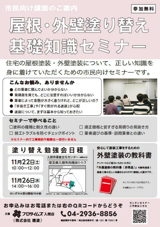 屋根塗装&外壁塗装 塗り替え勉強会のお知らせ 11月開催
