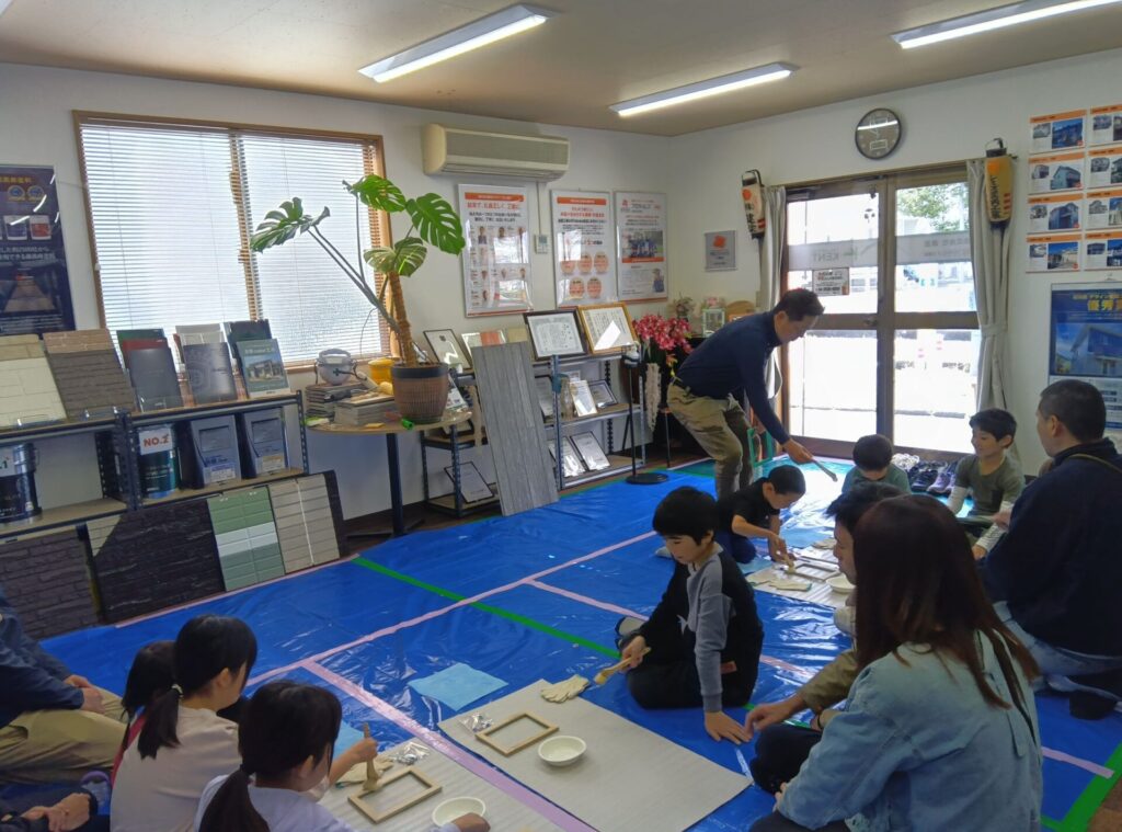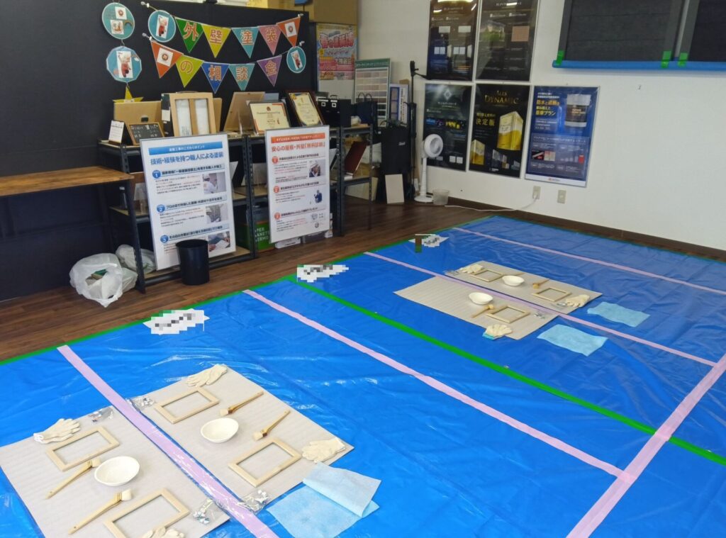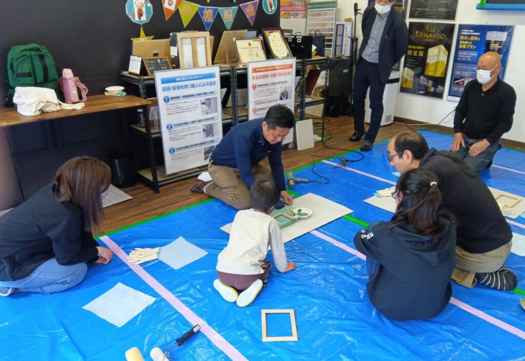 イベントでは、実際の現場で使用するプロ用の道具を用いた塗装体験や、オリジナル写真立て作りを体験していただきました。