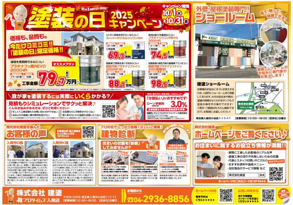 株式会社建塗 プロタイムズ入間店へお問い合わせください。