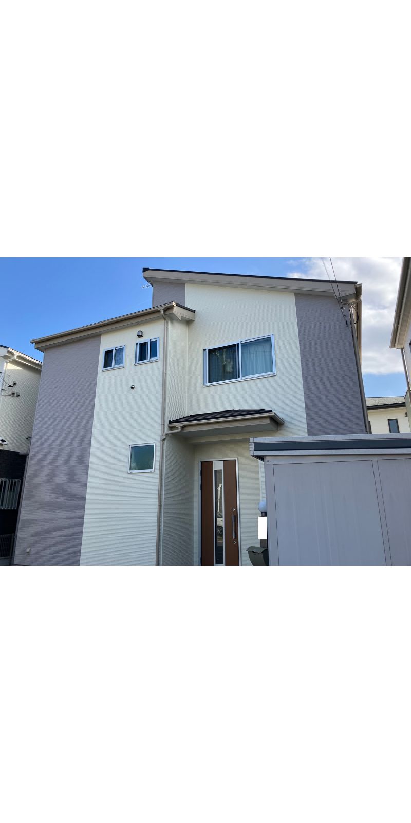 | 使用塗料1 | 外壁/アステックペイント・プラチナシリコンREVO2000IR メイン:グレイドルフィン(3分艶) アクセント:ブロークンホワイト(3分艶) |
